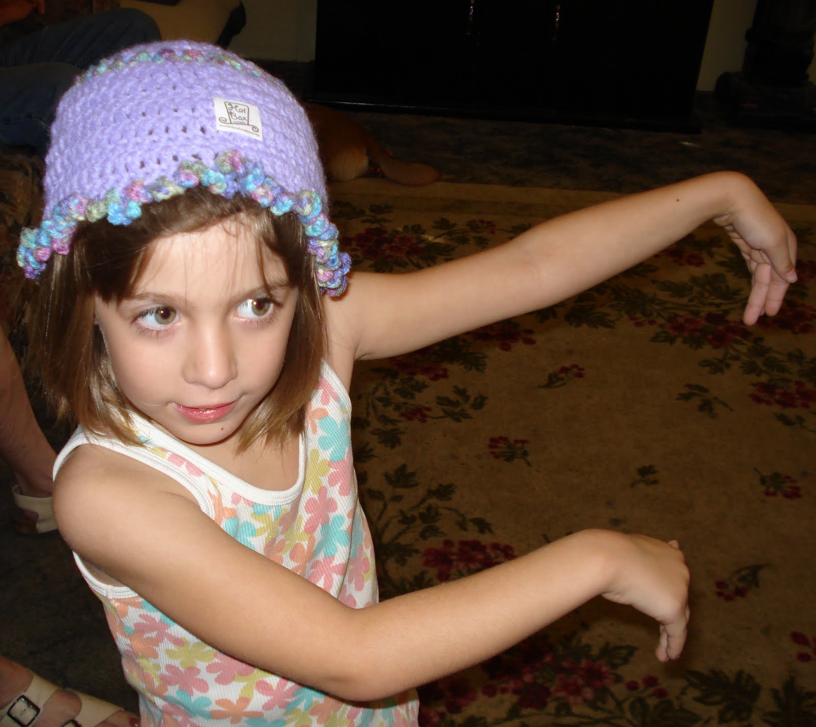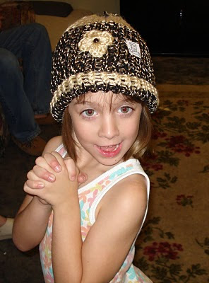 We received a packaged of these beautiful hats, which are wrapped up so nice, and we wanted to take some pictures to show everyone. This is my first time posting pictures of my family on my blog. So Allison was thrilled to pose and ham it up for the camera! I present to you Allison modeling her new hats!!